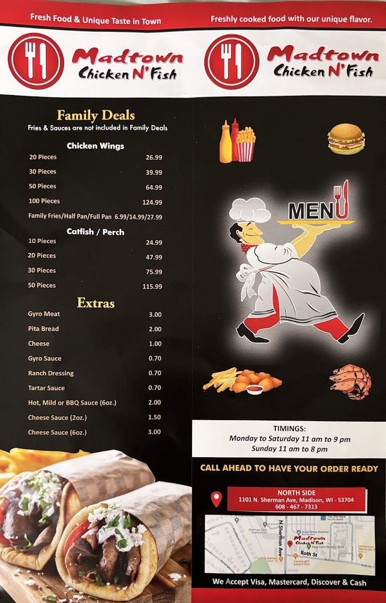 Welcome to Madtown Chicken N' Fish, a delightful eatery located at 1101 N Sherman Ave, Madison, WI. This spot offers an extensive menu that caters to both chicken and fish lovers alike.